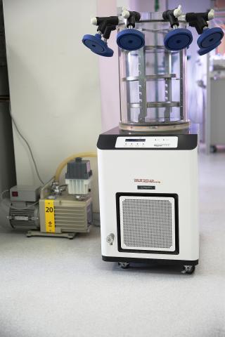 Altyapıda bulunan Gyrozen Hypercool Liyofilizatör cihazı ile 4 litreye varan farklı biyokütle örnekleri -110 °C’ye kadar düşen sıcaklıklarda liyofilizasyon işlemlerine tabi tutulabilmektedir.